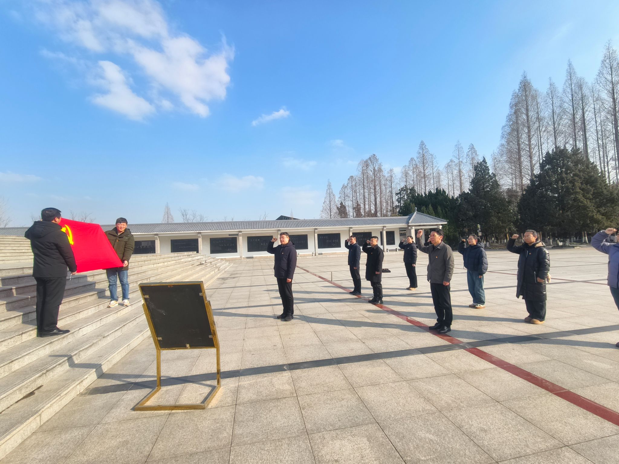 在庄严肃穆的烈士纪念碑前,全体党员整齐列队,举行了简短而隆重的缅怀仪式。支部代表敬献花篮,全体同志鞠躬致敬,表达对革命先烈的深切哀思和崇高敬意。随后,在党委常委、副校长张灏的带领下,全体党员面向党旗,高举右拳,重温入党誓词,以铿锵誓言铭记初心使命,坚定为党的事业奋斗终身的决心。