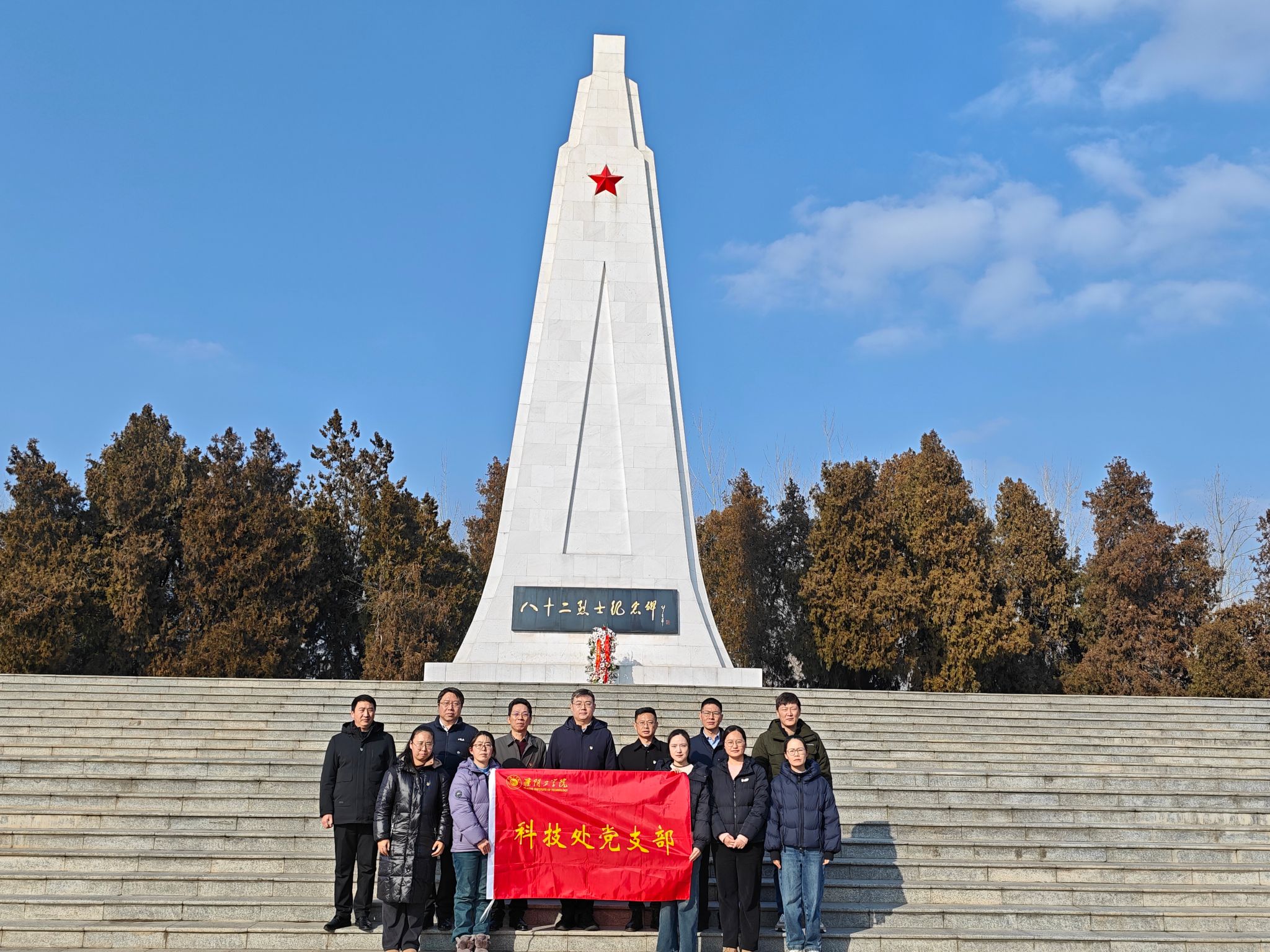 为巩固拓展主题教育成果,进一步坚定党员干部理想信念,激发爱国热情与工作干劲,增强历史责任感和使命感,1月28日下午,机关党委科学技术处党支部组织全体党员赴刘老庄八十二烈士纪念园开展“赓续红色血脉 砥砺科技报国”主题党日活动。校党委常委、副校长张灏参加活动。
